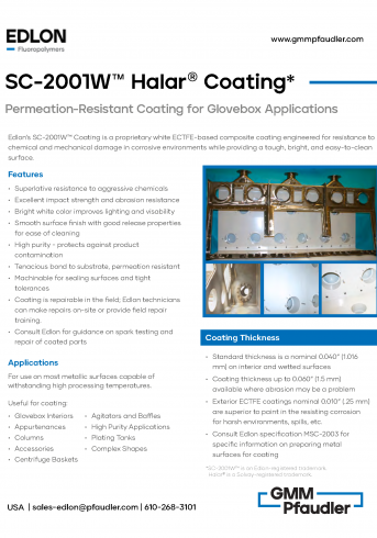 Edlon 的 SC-2001 是一种基于 ECTFE 的专利复合涂层,用于在腐蚀性环境中抵抗化学和机械损伤。